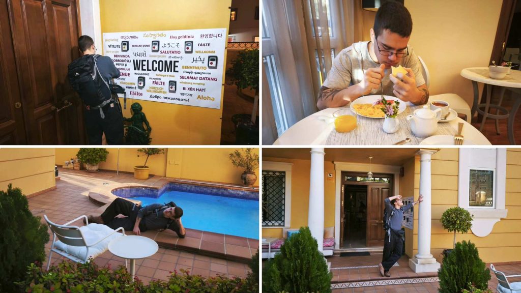 Pri večernjem parkiranju u hotelsku garažu, zbog opreme na gepeku, zapeli smo za strop i potrgali stege koje su držale gume. Ako je to sve od prokletstva Hotela California – odmah potpisujem. Šalu na stranu, hotel je lijep, izvan sezone znatno povoljniji, a naša mala soba bila je posvećena Brigitte Bardot.