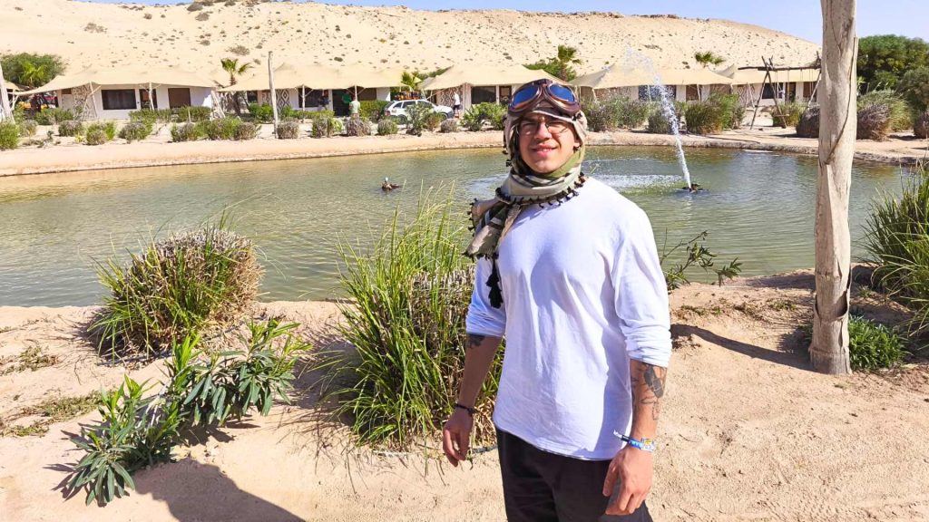 Plan je bio doći do bivka, ali javljaju da je kamp pun. Ostale su samo luksuzne kućice s luksuznim cijenama, pa se odlučujemo za hotel od 30 eura u Dakhli. Grad je meka za kajtere, pun maštovitih hotela uz obalu lagune.