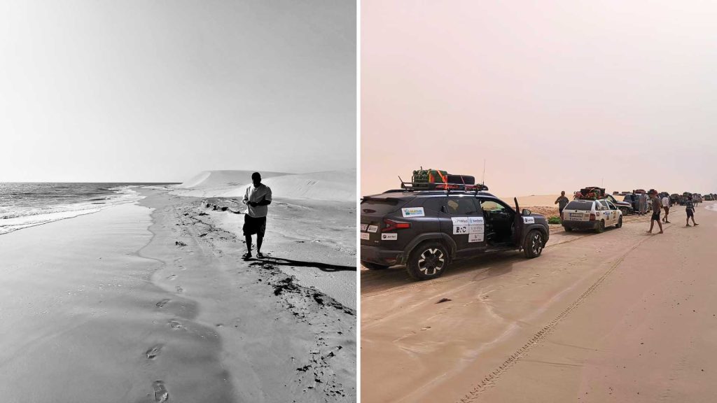 Jurimo 65 km/h, pijesak nas baca lijevo-desno. Din izbjegava valove koji pokušavaju zatvoriti prolaz i mora unaprijed čitati ocean. Ušao je u ritam s moćnim Atlantikom.