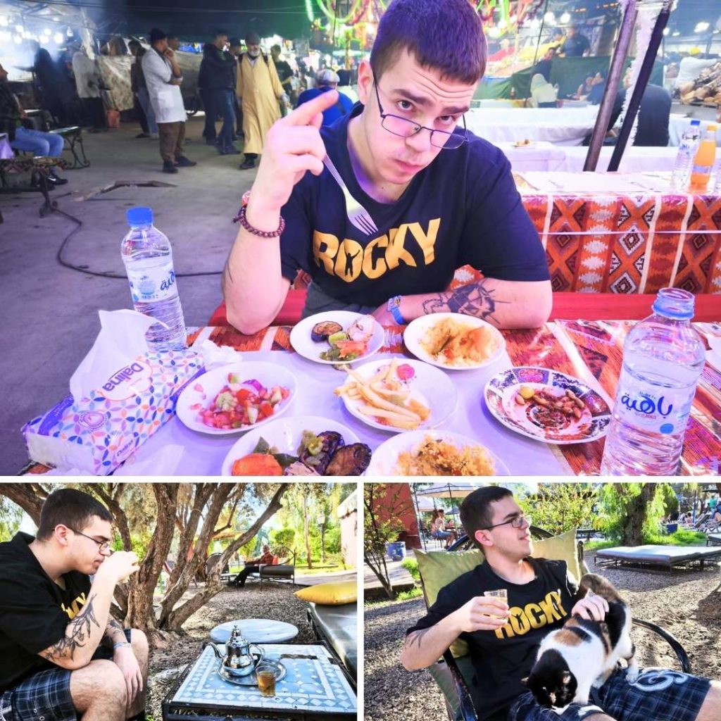 Navečer idemo u Marrakesh. Taksijem iz kampa ravno u kaos glavnog trga Jemaa el-Fnaa. Kobre plešu na zvuk frule, majmuni skaču po ramenima, dim roštilja i zavođenje šanera istovremeno napadaju sva osjetila. Za svaku interakciju potrebna je duboka koncentracija – da te netko ne oženi.