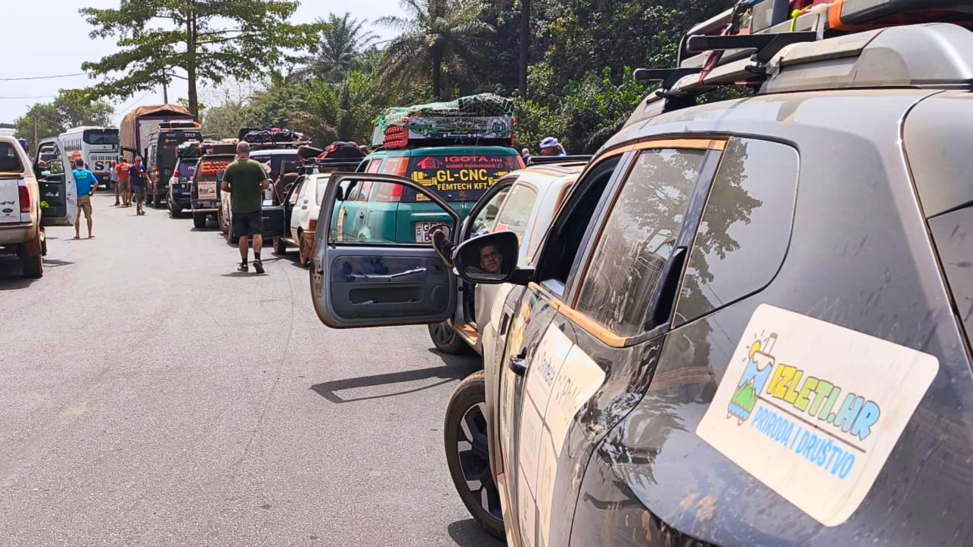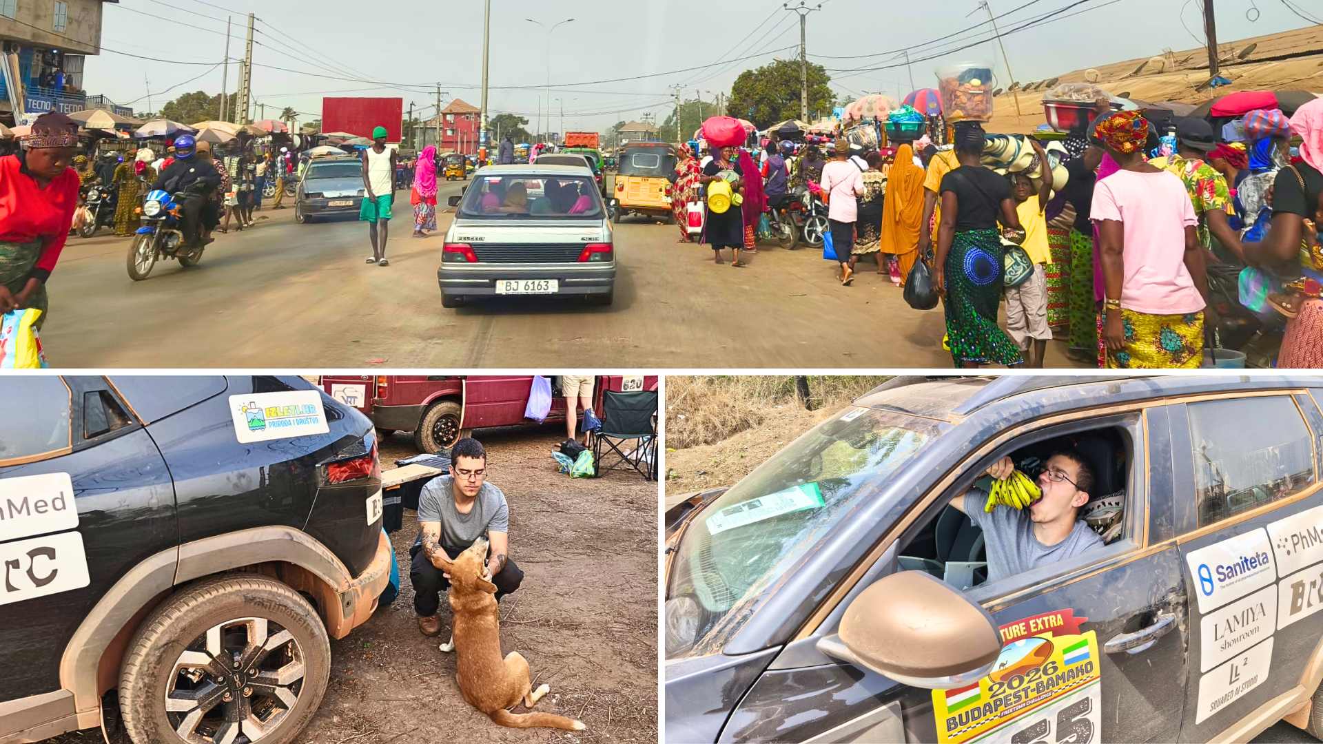 Temperatura raste na 41 stupanj i u autu se doslovno kuhamo. Granicu Sierra Leonea prelazimo iznenađujuće brzo zahvaljujući organizatorima. Ubrzo nas sustiže i kazahstanski tim. Kupujemo lokalnu SIM karticu kako bismo ostali dostupni, punimo Daciu s 49 litara goriva i krećemo prema oceanu. Na svakih desetak kilometara čeka nas vojna kontrola s užetom preko ceste, ali prolazimo bez problema.