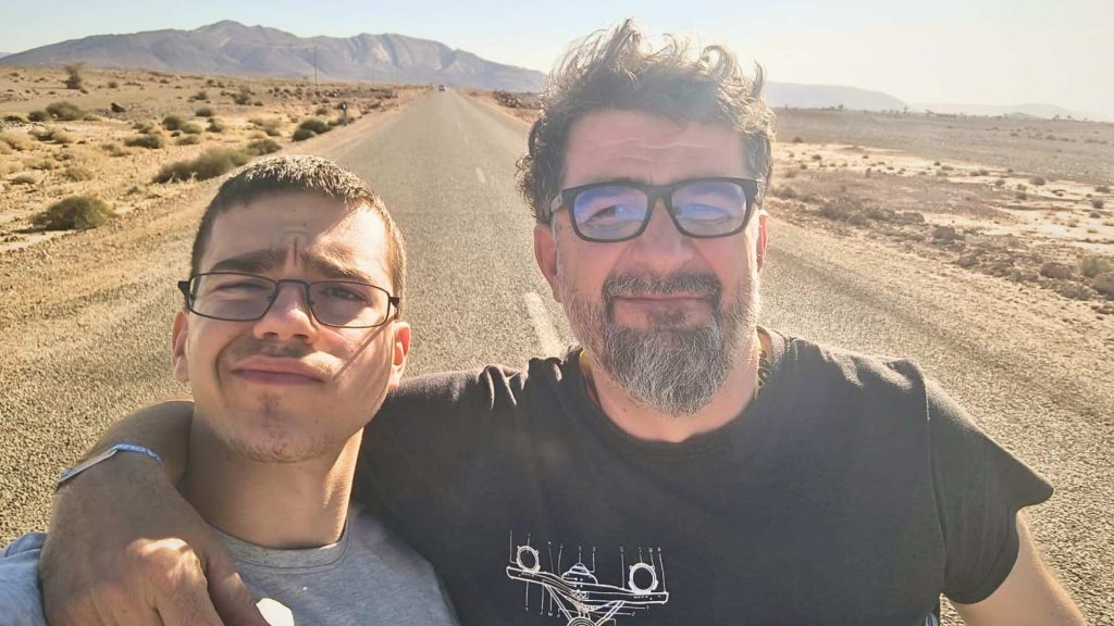 Vraćamo se istim putem, s laganom zebnjom zbog jučerašnjeg kamenog pakla. Ovaj put pažljivije gledamo mapu i nalazimo znatno bolju varijantu. Asfalt. Kakvo olakšanje. U Foum Zguidu točimo gorivo i pijemo nana čaj i espresso, šuteći i melankolično prateći promet u uspavanom gradiću. Već smo polu džombe i to se osjeti oko nas… dezić smo očito zanemarili. U selu naletim na prodavaonicu Assia, ali ne stignem slikati i poslati kćeri… next time.