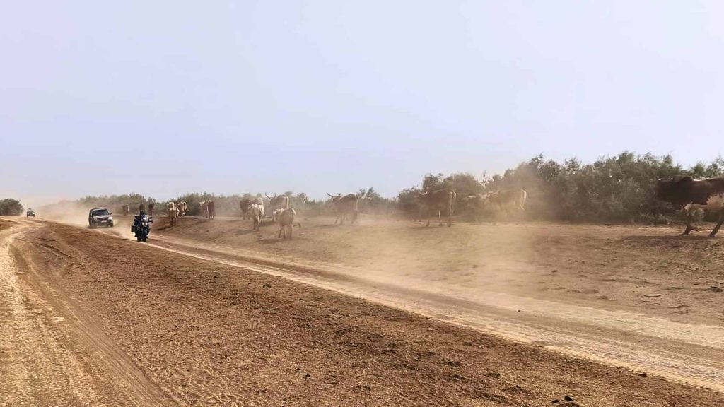 Krave, deve, koze i magarci hodaju cestom, vozimo koncentrirano da ih ne zgazimo. Pustinja polako prelazi u savanu, posutu makijom i niskim drvećem.